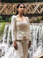 Giacca strutturata con collo quadrato e ganci sul davanti