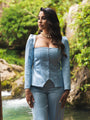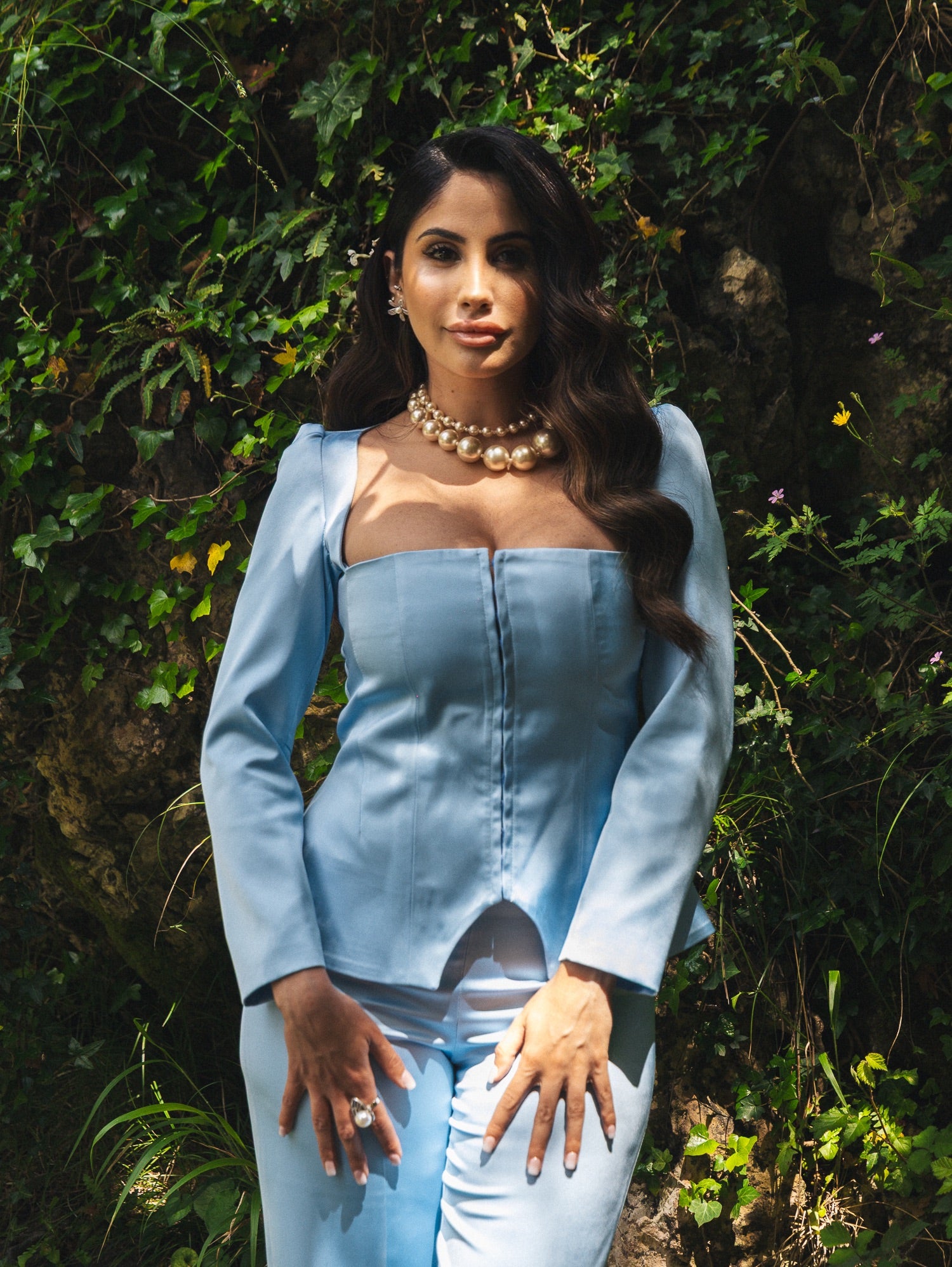Giacca strutturata con collo quadrato e ganci sul davanti
