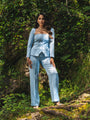Pantalone vita alta. Gamba larga e chiusura laterale